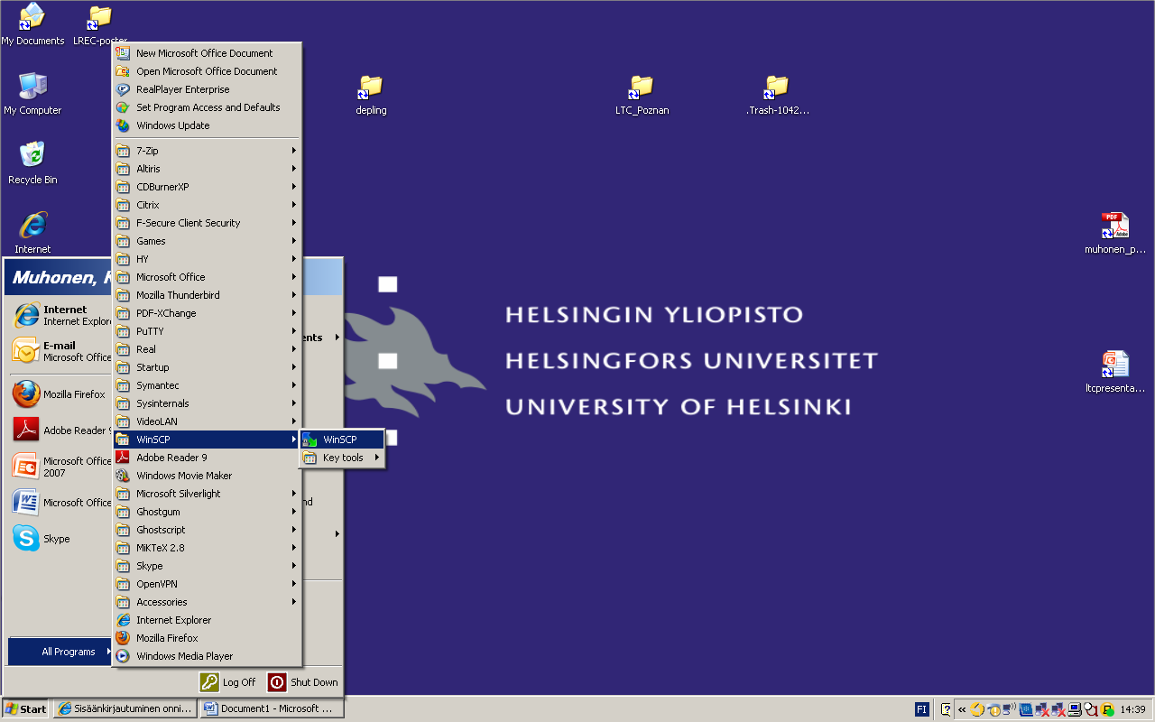 - Avaa Winscp-ohjelma Start-valikosta: