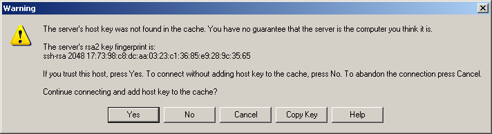 - Ensimmäisellä kirjautumiskerralla tulee seuraaavanlainen varoitus, johon vastataan ”Yes”.